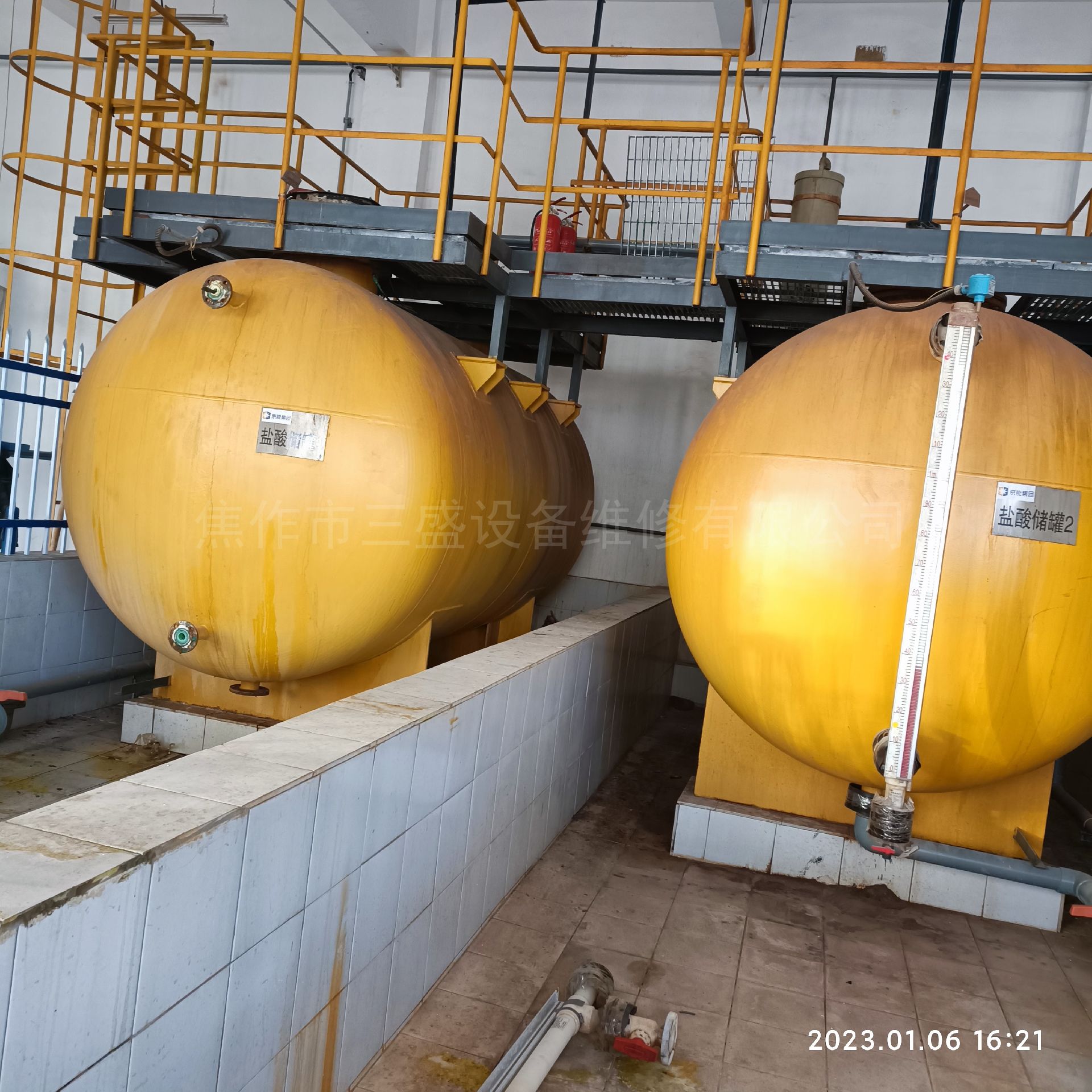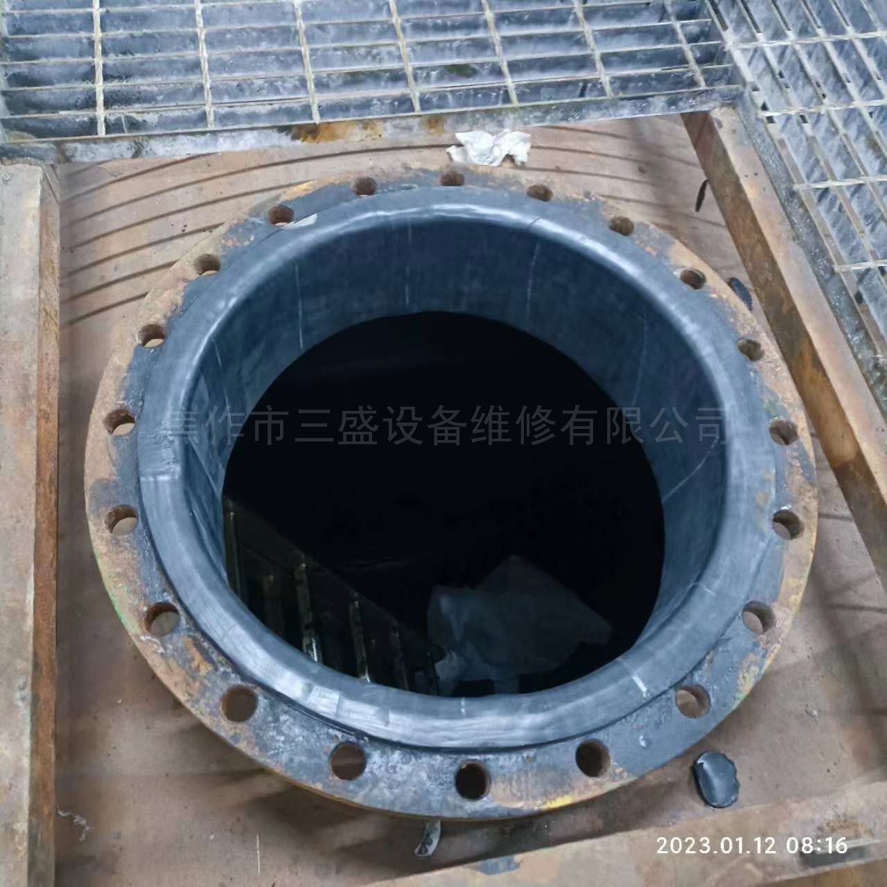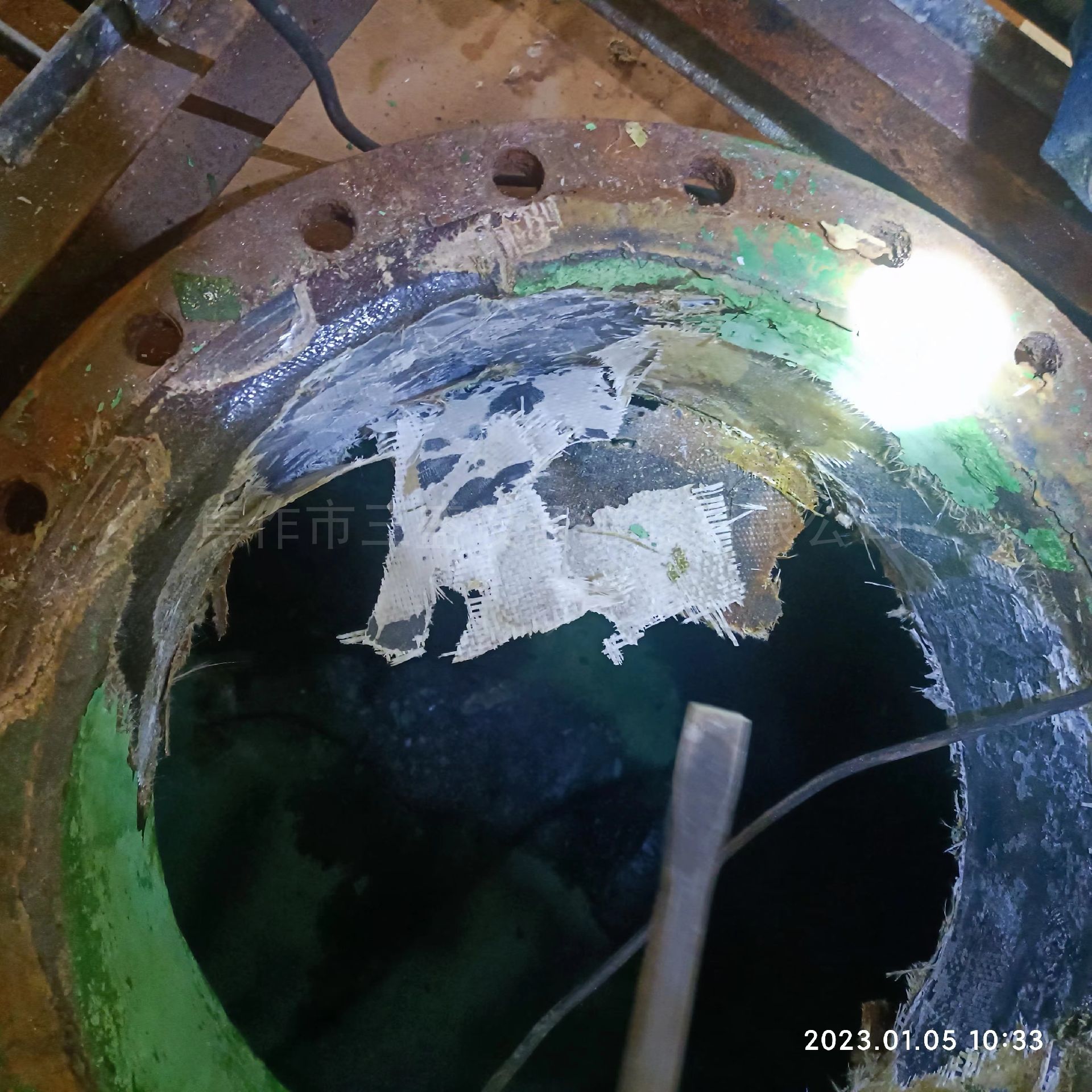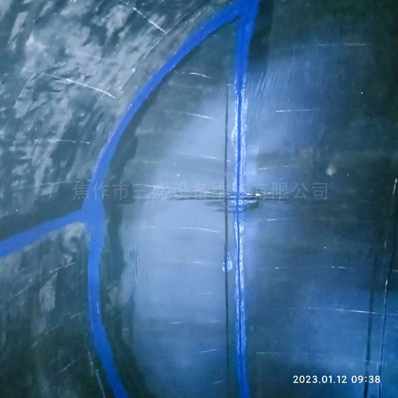 关于衬胶储罐现场橡胶衬里防腐技术问题橡胶衬里作为碳钢设备内防腐尤其是重防腐的技术手段历史悠久,具有可靠,长效,性价比突出等优势。常见于电厂化工厂除盐水设备,酸碱储罐,介质输送管道等的内防腐。设备原厂制造工艺如下:碳钢罐子本体制作,天然胶板粘接,进入硫化釜高温高压高温硫化,保持一定时间后自然冷却,硫化完成。天然经过高温硫化后与基体产生极强的粘接力,胶板本身经过高温硫化硬度和强度也会发生根本性提高。出现衬胶渗漏问题进行修复,一般会返厂维修比较靠谱,但对于大型设备,只能现场维修。衬胶罐子现场硫化橡胶防腐,由于现场施工条件受限,高温高压硫化难以进行,采用普通的胶板施工或者单纯采用高分子修复材料施工都有一定的局限性,普通的 胶板和原来的衬胶难以融合为一体,随着介质的冲刷会造成修复部位脱落开裂。我公司采用自硫化丁基胶板配合高分子修复材料现场长效解决除盐水设备阳床,阴床,混床,酸碱储罐的内防腐问题。不仅对于衬胶局部修复能够实现现场长效修复,对于衬胶防腐整体现场重做也能达到高温硫化的使用寿命。具体详情请咨询本公司技术人员。